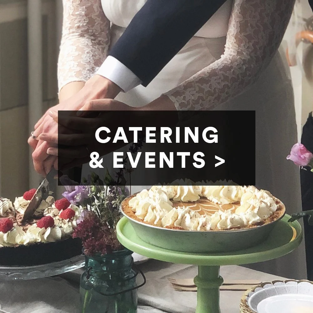 We welcome customers to enjoy the cozy old-school vibes of our pie shop café, and to share our knowledge with informative Pie Baking Classes and lively Team Building Events. You can even bake our pies at home with our extensive lineup of Take & Bake items.