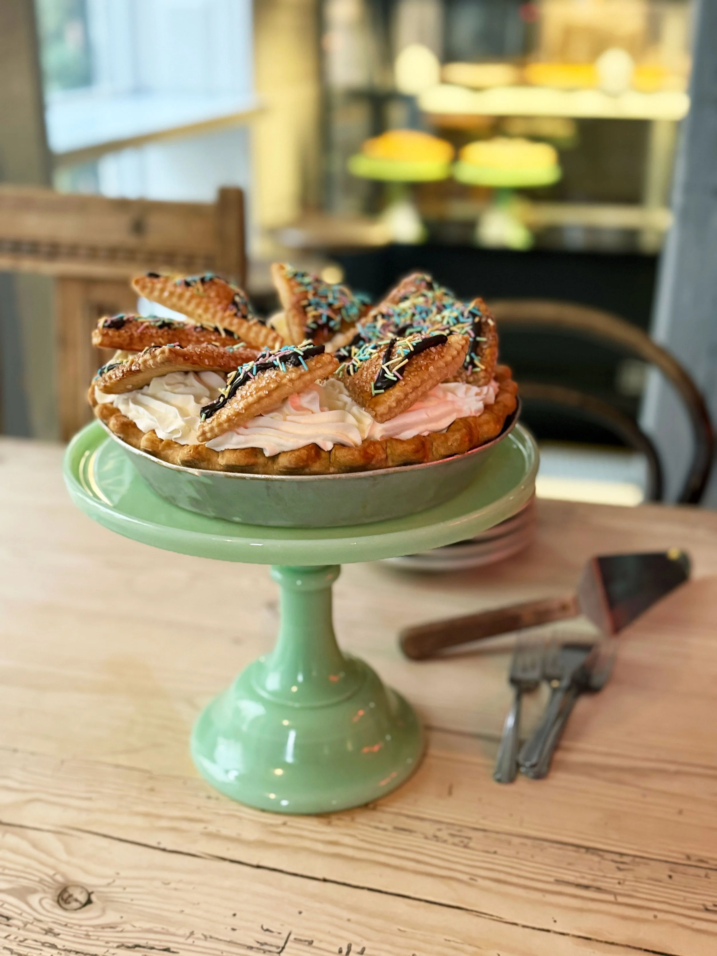 Our signature sweet pies are handmade from scratch daily and can be enjoyed by the slice, or you can preorder whole pies to-go.